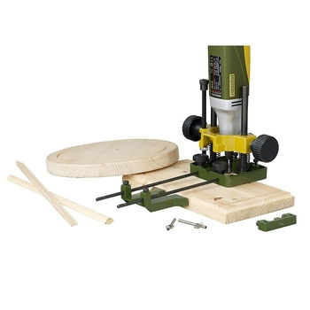 Per sbozzare, fresare scanalature e bordi, smussare. Con guida per bordo (max. sbraccio 150 mm), più guida per tondi intercambiabile. Profondità max regolabile con corsa selezionabile. Ideale anche come guida per forare pezzi rotondi usando il prisma nella base di lavoro.